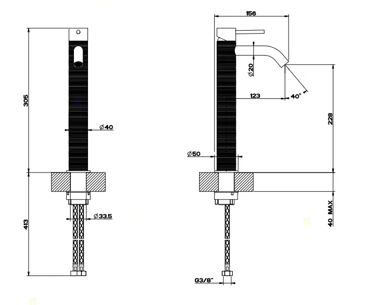 Gessi 316 Смеситель для раковины высокий без донного клапана однорычажный, цвет: steel brushed 54309#239