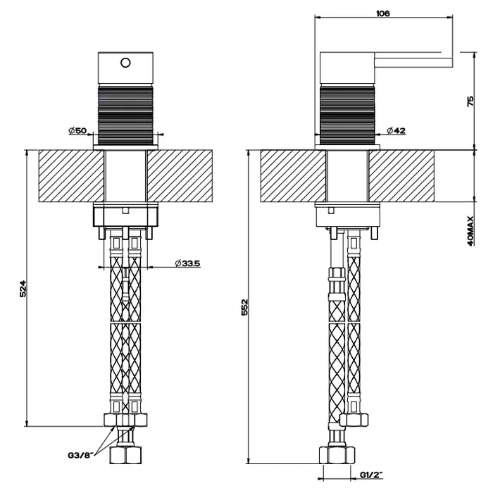 Gessi 316 Trame Встраиваемый смеситель для раковины, излив 20-18 см, цвет: steel brushed 54394#239