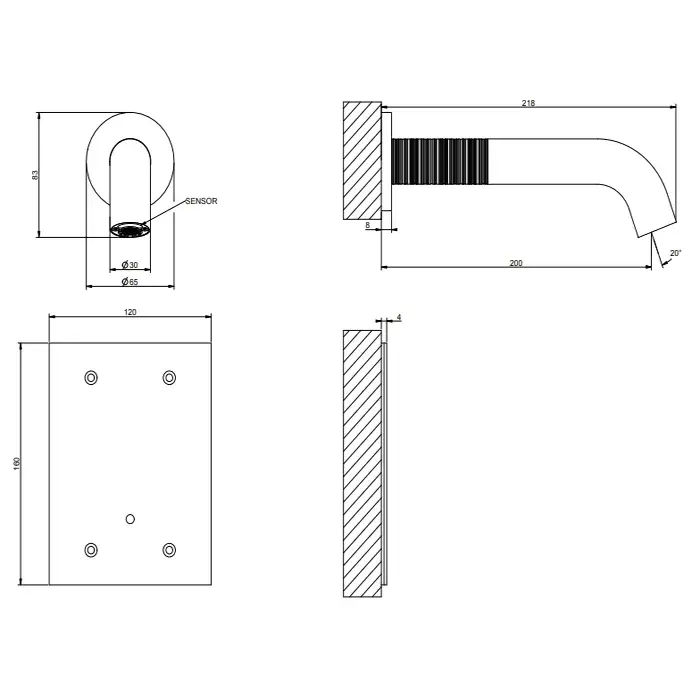 Gessi 316 Trame Смеситель для раковины настенный, излив 20 cм, цвет Steel Brushed 54315#239