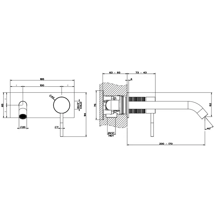Gessi 316 Trame Встраиваемый смеситель для раковины, излив 20-18 см, цвет: steel brushed 54394#239