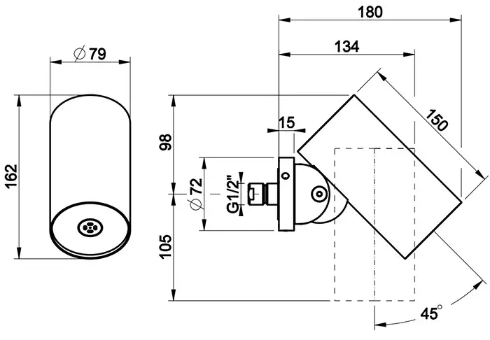Gessi 316 Верхний душ Ø7.9см., с настенным креплением, Тропический ливень, цвет: Steel Brushed