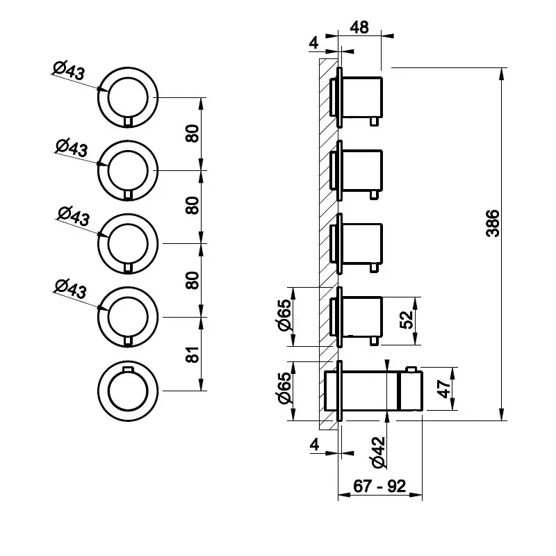 Gessi 316 Внешняя часть встраиваемого в стену термост смес на 4 потр, цвет: black metal brushed PVD 54338#707
