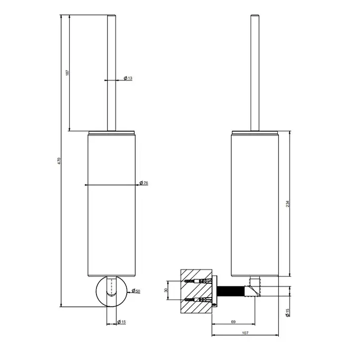 Gessi Anello Ершик для унитаза подвесной с белой колбой, фурнитура, цвет: black metal brushed PVD 63719#707