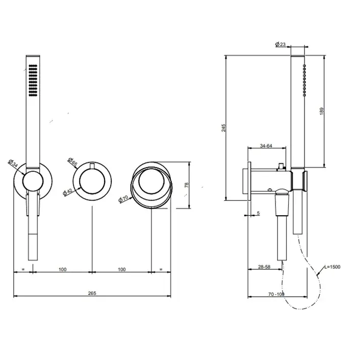 Gessi Anello Смеситель для ванны встраиваемый 2 потребителя, лейка, внешняя часть, цвет: matte black 63345#299