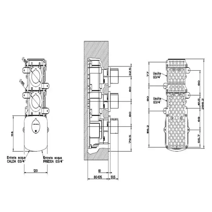 Gessi Anello Термостат для душа встраиваемый на 2 потребителя, внешняя часть, цвет: chrome 43234#031