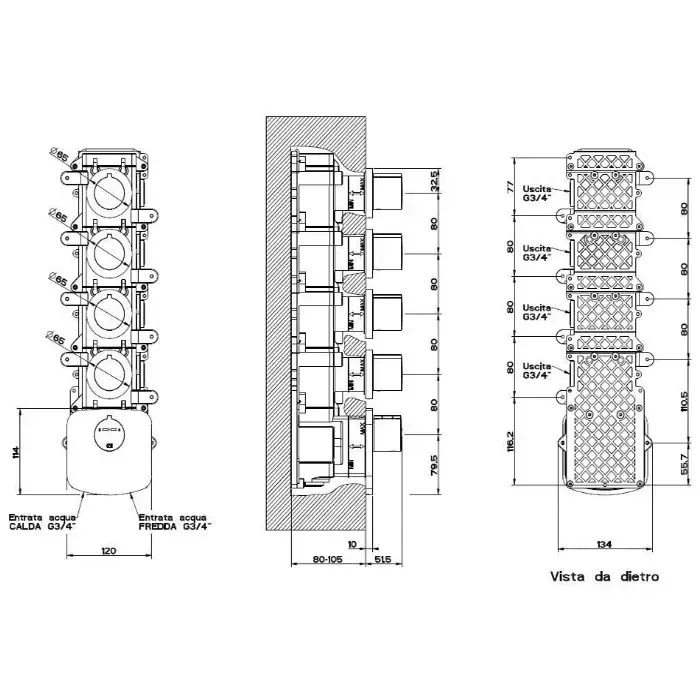 Gessi Anello Термостат для душа встраиваемый на 4 потребителя, внешняя часть, цвет: chrome 43238#031