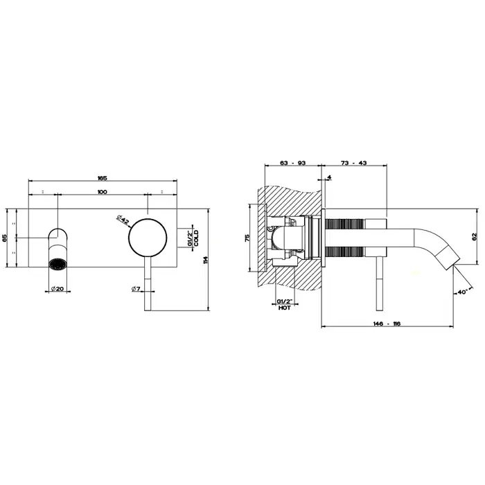 GESSI 316 Встраиваемый смеситель для раковины с изливом 200-170мм (внешняя часть), цвет: steel brushed