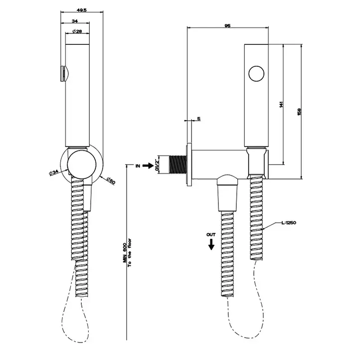 Gessi Transparenze Гигиенический душ, с настенным держателем, запорным краном, с подводом воды и шлангом 125cм., цвет: Black Metal Br. PVD