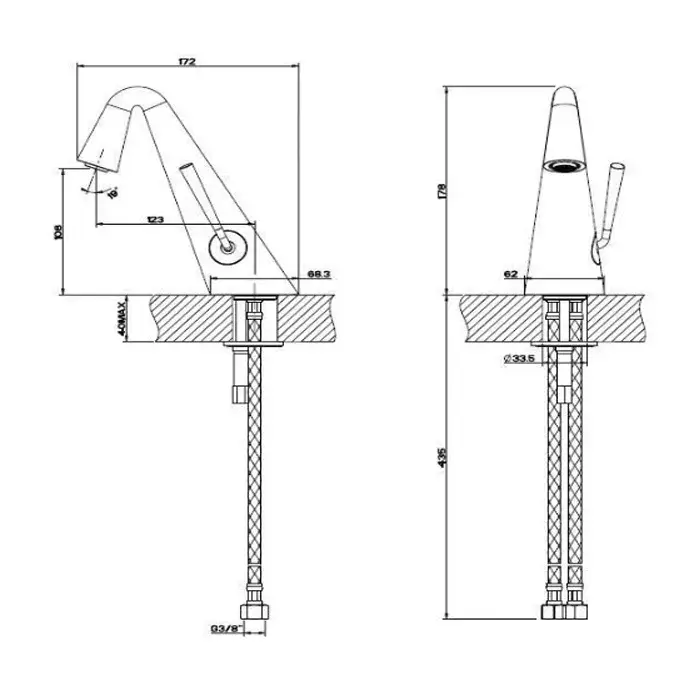 Gessi Cono Смеситель для раковины с соединительными шлангами, цвет хром 45001#031