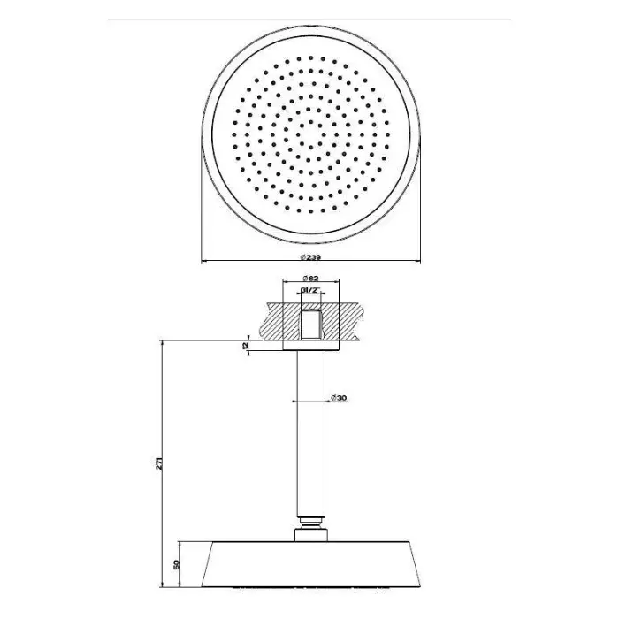 Gessi Cono Верхний душ 23,9 см 1 вид струи, кронштейн потолочный 28,1 см, цвет: chrome 45152#031