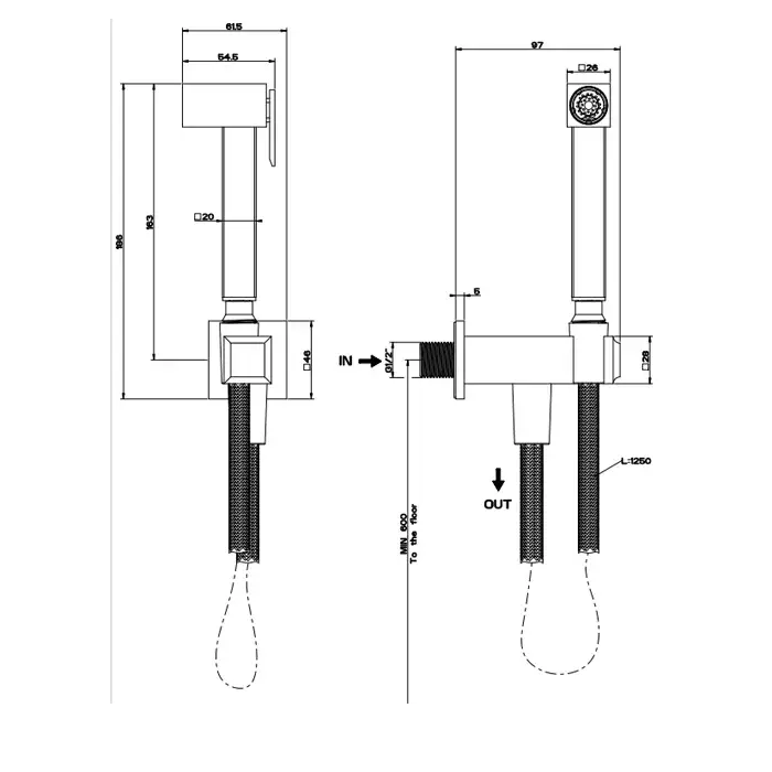 Gessi Eleganza Гигиенический душ с настенным держателем, подводом воды и шлангом 125см., цвет: Finox Brushed Nickel