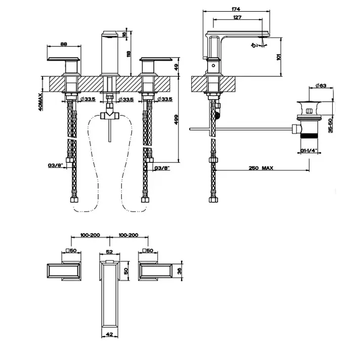 Gessi Eleganza Смеситель для раковины на 3 отверстия с донным клапаном, цвет: хром