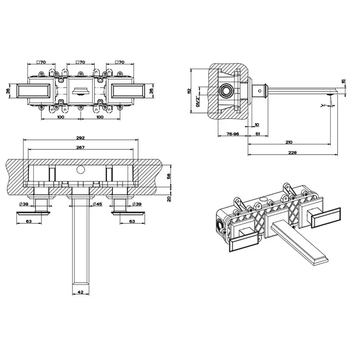 Gessi Eleganza Встраиваемый смеситель для раковины на 3 отверстия, цвет черный металлик 46090#706