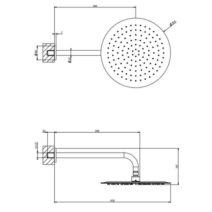 Gessi Emporio Shower Верхний душ 30 см 1 вид струи, кронштейн настенный 36,8 см, цвет: mirror steel 47386#238