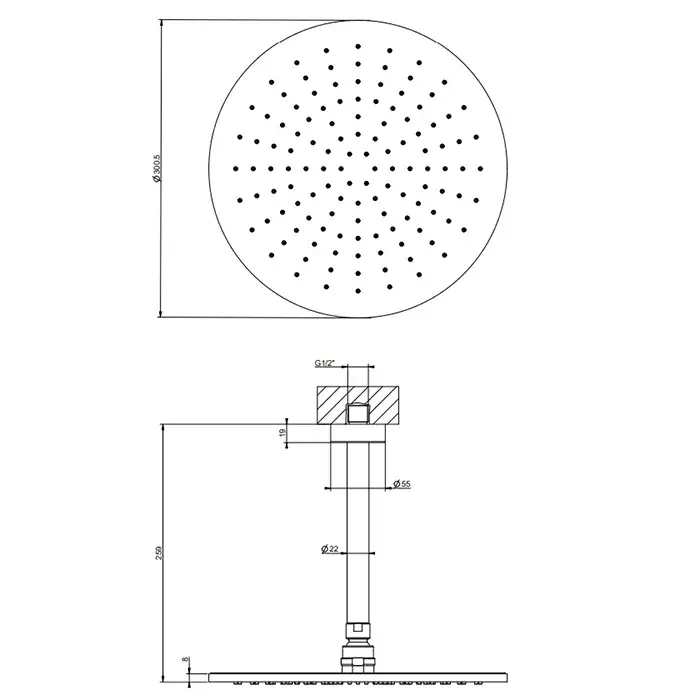Gessi Emporio Shower Верхний душ 30 см 1 вид струи, кронштейн потолочный 25,9 см, цвет: chrome 47370#031