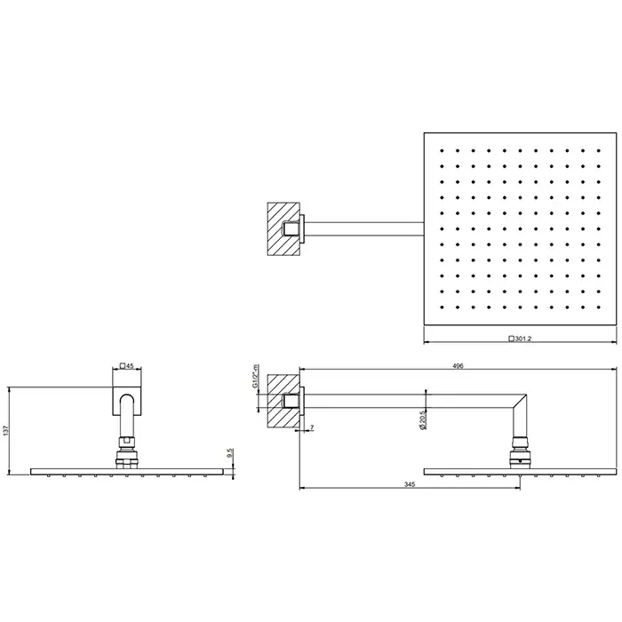 Gessi Emporio Shower Верхний душ 30x30 см, кронштейн настенный 35 см, цвет: finox brushed nickel 47364#149