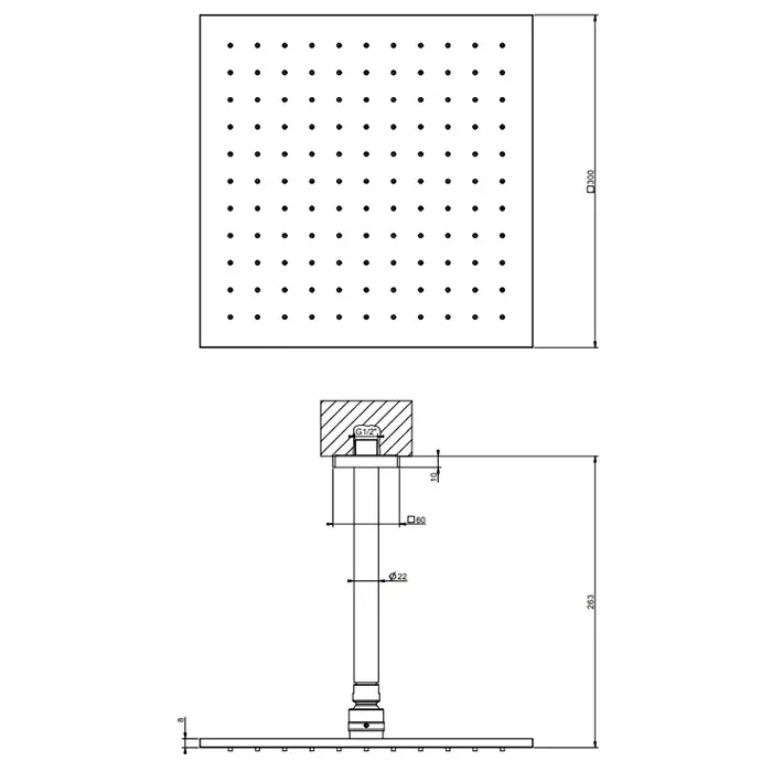 Gessi Emporio Shower Верхний душ 30x30 см, кронштейн потолочный 26 см, цвет: finox brushed nickel 47362#149