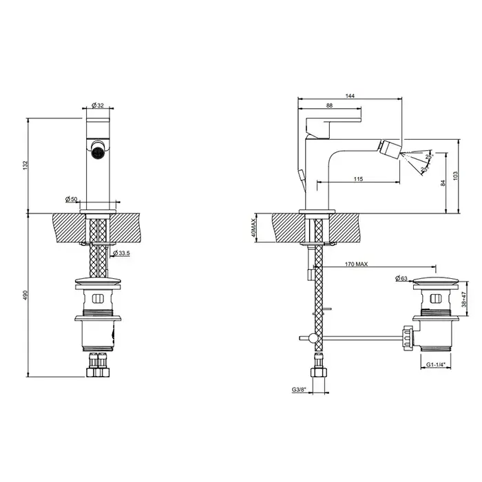 Gessi Emporio Via manzoni Смеситель для биде, однорыч., с донным клапаном, цвет: finox brus nickel 38607#149
