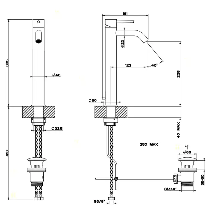 Gessi 316 Смеситель для раковины, на 1 отв., высокий h=30.5cм, с донным клапаном, излив: 15.5cм, цвет: Black XL