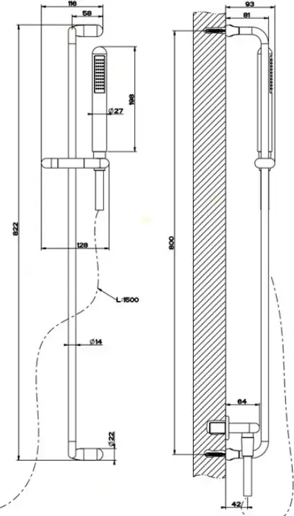 Gessi Goccia Душевой гарнитур: ручной душ, штанга 82,2 см, шланг 150 см, цвет: chrome 33645#031