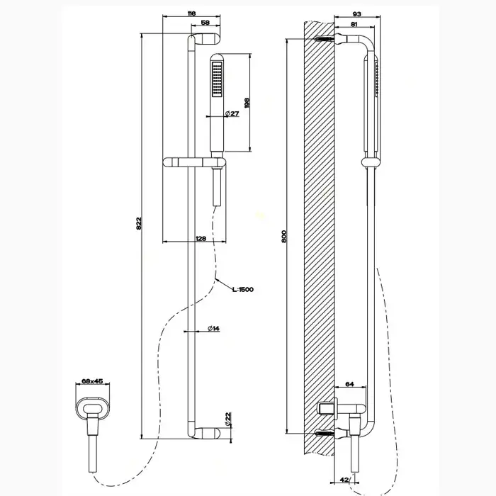 Gessi Goccia Душевой гарнитур: ручной душ, штанга 82,2 см, шланг 150 см, цвет: chrome 33642#031