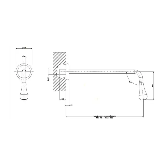Gessi Goccia Излив настенный, длина под заказ, цвет: matte black 33723#299