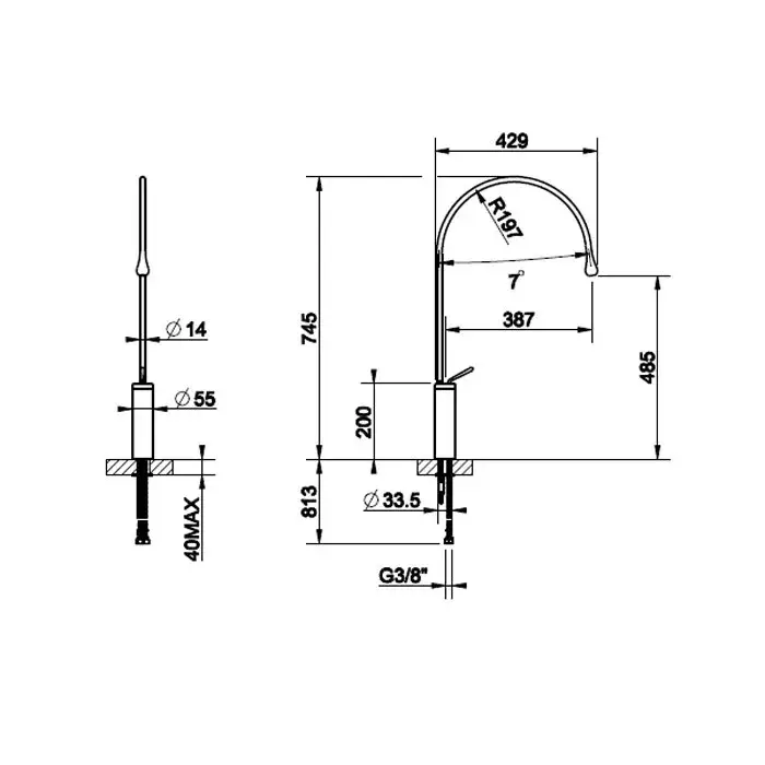 Gessi Goccia Смеситель для раковины на 1 отверстие, излив 387мм R=197, цвет: хром