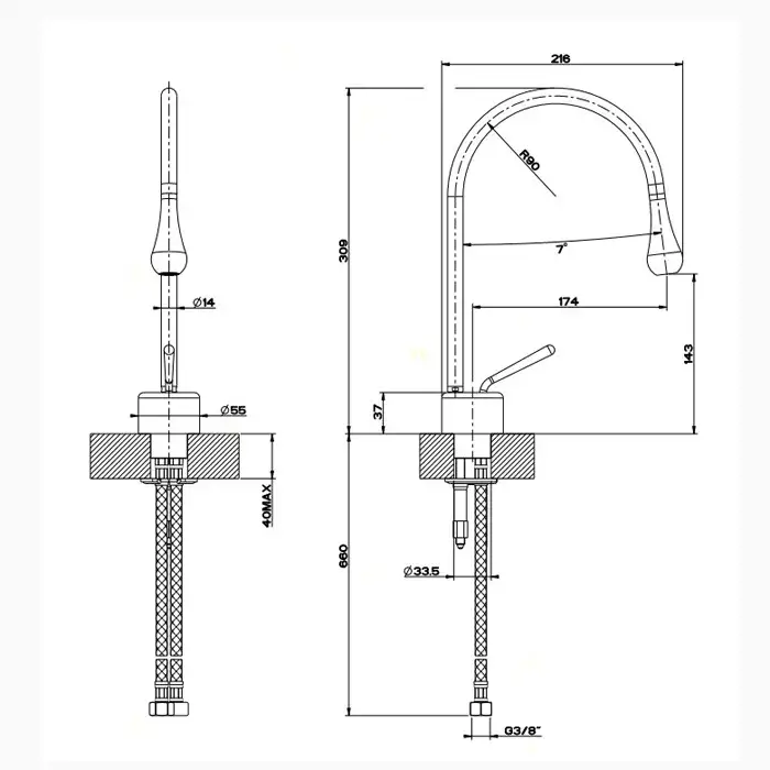 Gessi Goccia Смеситель для раковины на 1 отверстие, излив 174мм R=90, цвет: хром