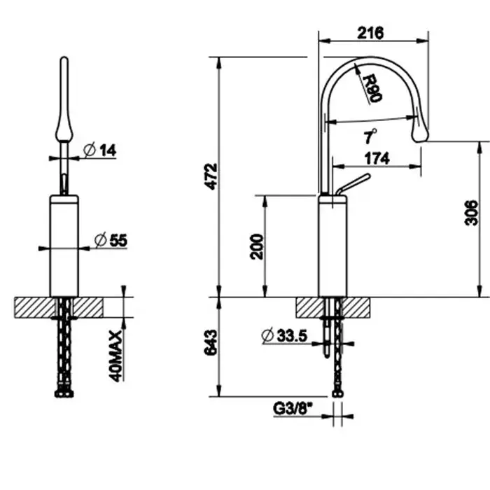 Gessi Goccia Смеситель для раковины на 1 отверстие, излив 174мм R=90, цвет: хром