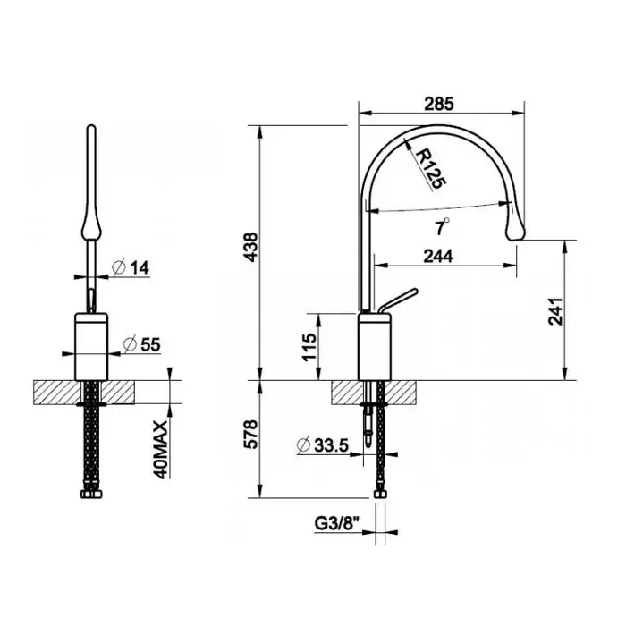 Gessi Goccia Смеситель для раковины на 1 отверстие, излив 244мм R=125, цвет: хром