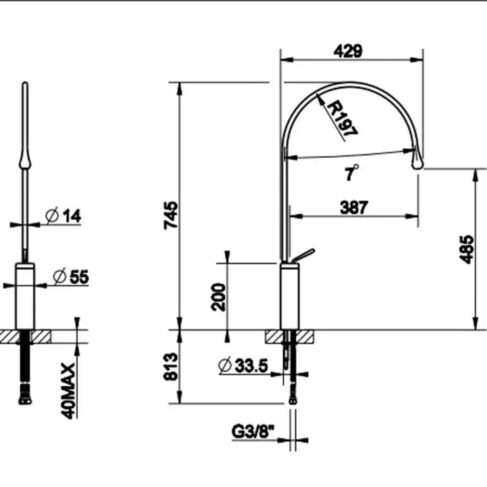 Gessi Goccia Смеситель для раковины на 1 отверстие, излив 387мм R=197, цвет: хром