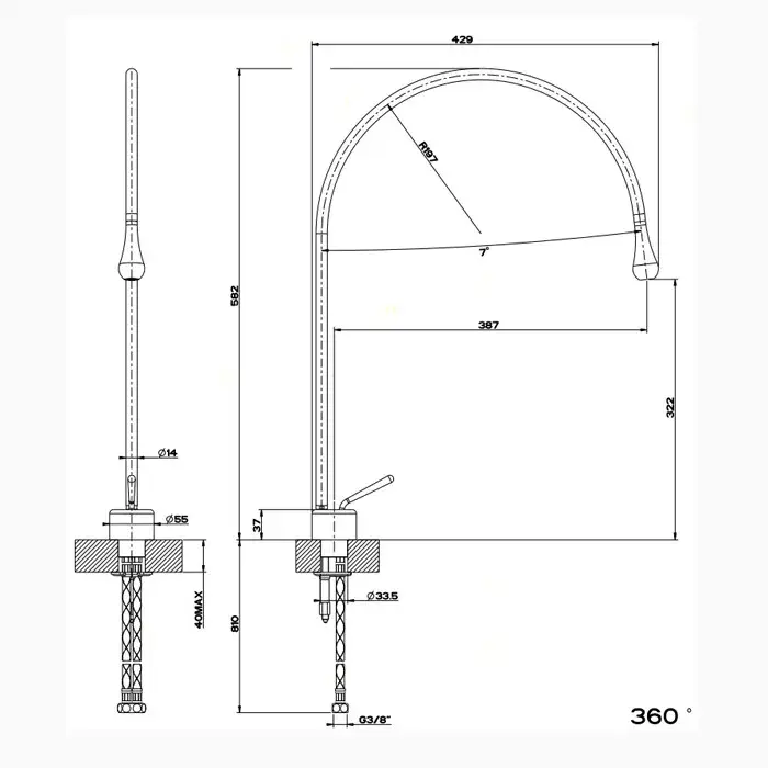 Gessi Goccia Смеситель для раковины на 1 отверстие, излив 38,7 cм, R=197, цвет хром 33603#031