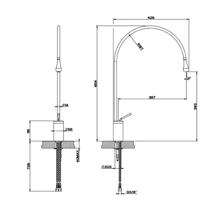 Gessi Goccia Смеситель для раковины на 1 отверстие, излив 387мм R=197, цвет: хром