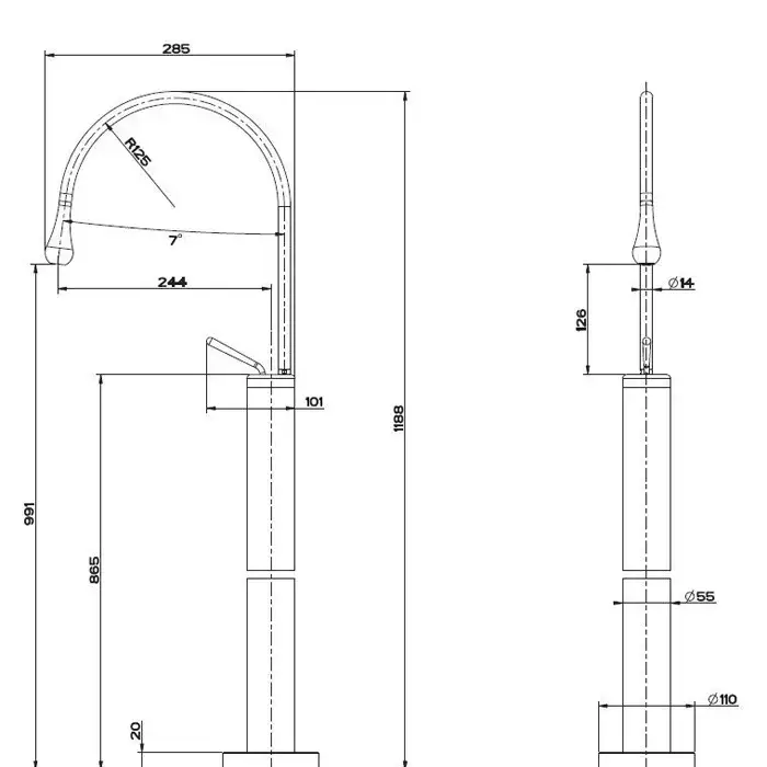 Gessi Goccia Смеситель для раковины напольный, внешняя часть, излив 28,5 см, цвет: matte black 33624#299