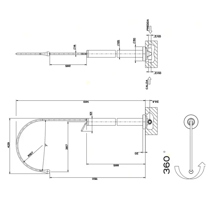 Gessi Goccia Смеситель для раковины на 1 отверстие, излив 387мм R=197, цвет: хром