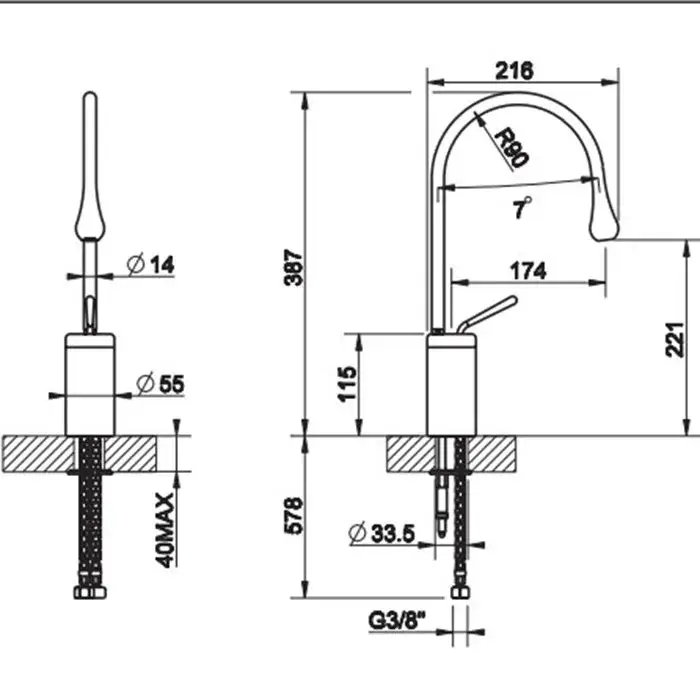 Gessi Goccia Смеситель для раковины на 1 отверстие, излив 174мм R=90, цвет: хром