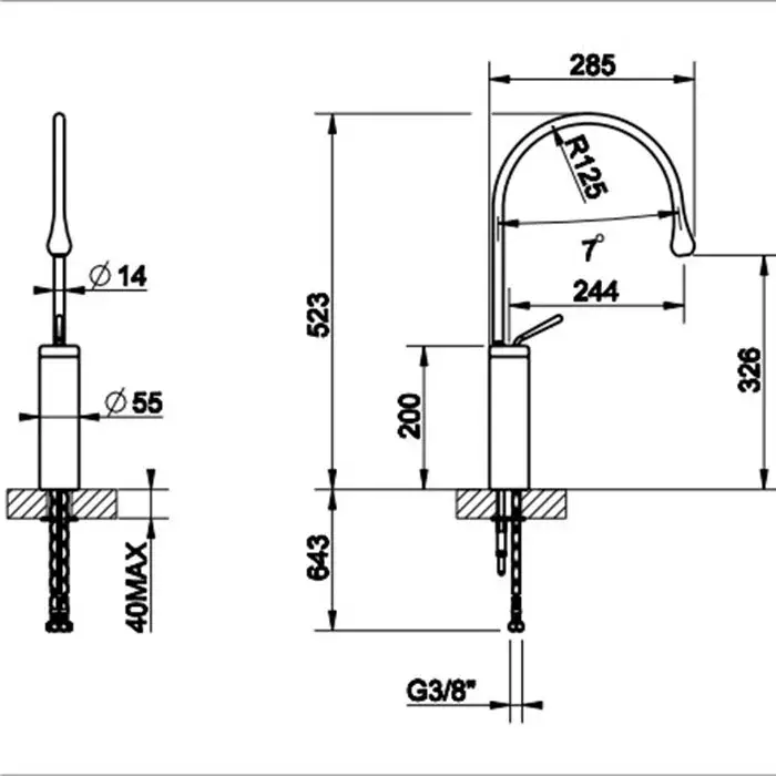 Gessi Goccia Смеситель для раковины на 1 отверстие, излив 244мм R=125, цвет: хром