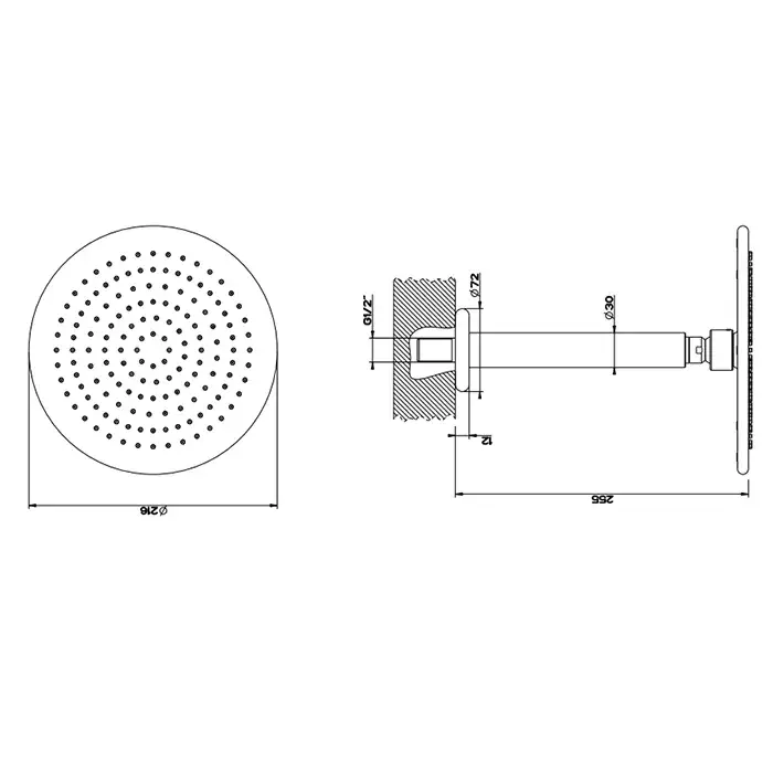 Gessi Goccia Верхний душ 21,6 см 1 вид струи, кронштейн потолочный 26 см, цвет: matte black 33762#299