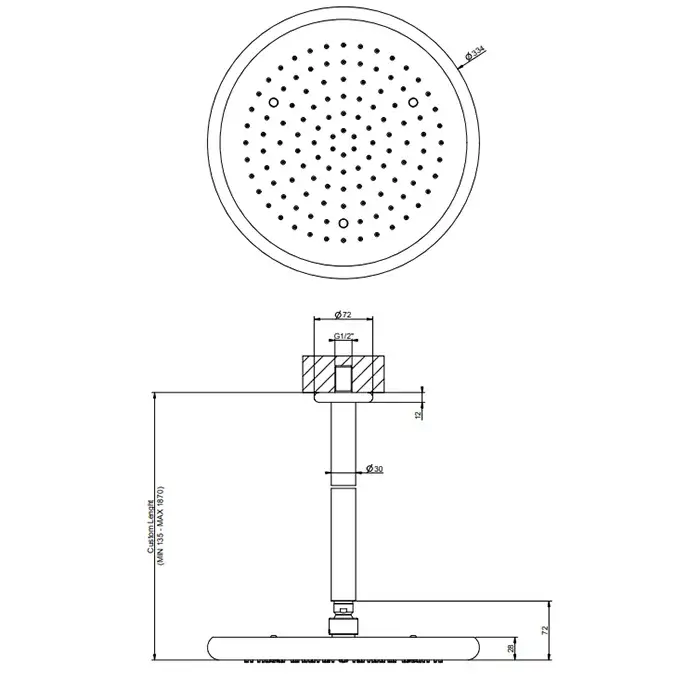 Gessi Goccia Верхний душ 33,4 см 1 вид струи, кронштейн потолочный высота под заказ, цвет: chrome 33768#031