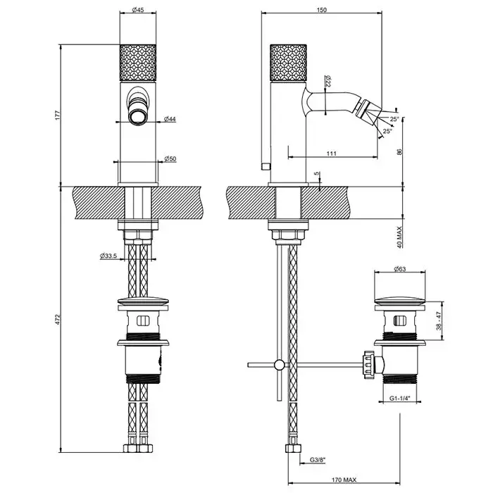 Gessi Habito Diamantao Смеситель для биде на 1 отв., с донным клапаном, цвет: хром