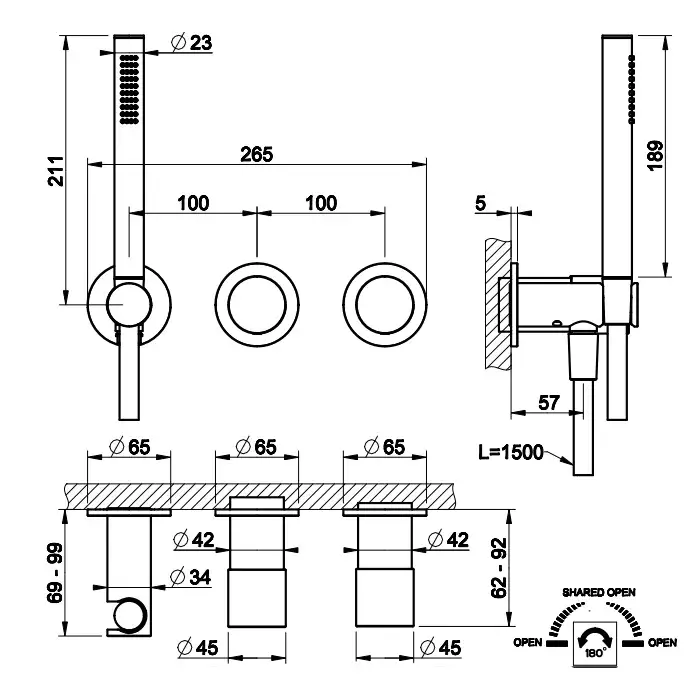 Gessi Habito Diamantao Смеситель настенный встраиваемый, однорычажный, с переключателем на 2 положения, с ручным душем, настенным держателем,цвет: хром