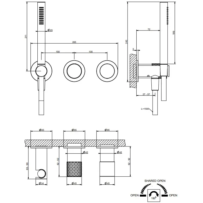 Gessi Habito Diamantao Смеситель настенный встраиваемый, однорычажный, с переключателем на 2 положения, с ручным душем, настенным держателем,цвет: хром