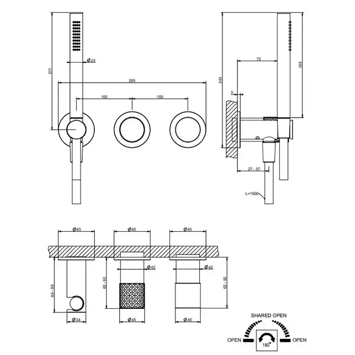 Gessi Habito Смеситель для душа встраиваемый, внешняя часть, с ручным душем, цвет: chrome 70138#031