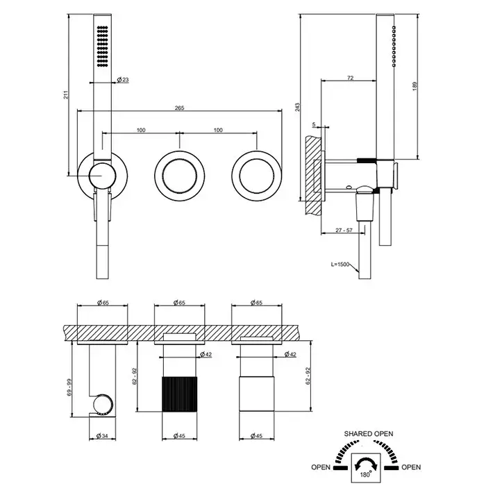 Gessi Habito Diamantao Смеситель настенный встраиваемый, однорычажный, с переключателем на 2 положения, с ручным душем, настенным держателем,цвет: хром