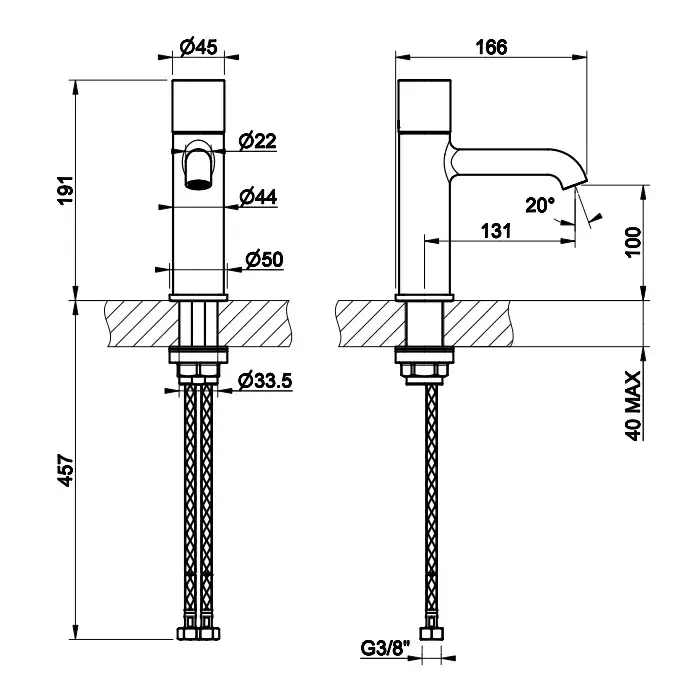 Высота излива, см