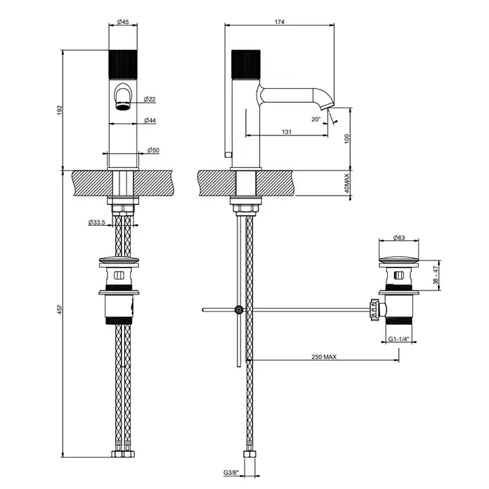 Gessi Habito Cesello Смеситель для раковины, высокий, 1 отв., без донного клапана, цвет: Matte Black
