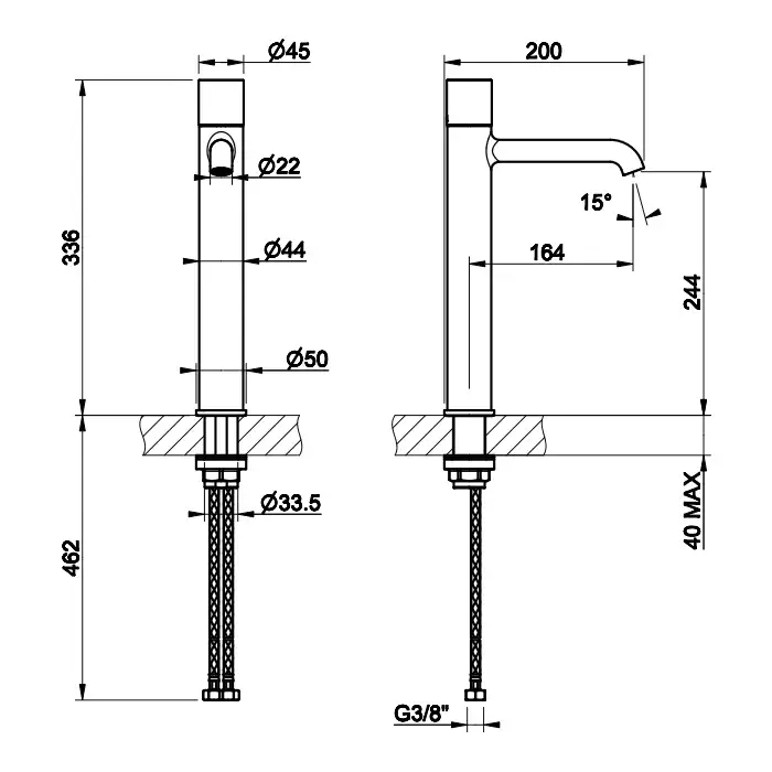 Gessi Habito Cesello Смеситель для раковины, высокий, 1 отв., без донного клапана, цвет: Matte Black