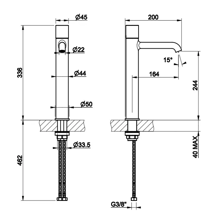 Gessi Habito Cesello Смеситель для раковины, высокий, 1 отв., без донного клапана, цвет: Matte Black