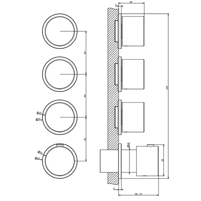 Gessi Habito Термостат для ванны встраиваемый на 3 потребителя, внешняя часть, цвет: black metal PVD 63436#706