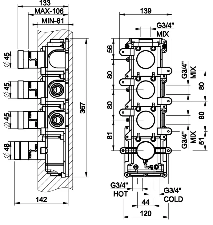 Gessi Habito Встраиваемая часть для термостата на 3 независимых потребителя, цвет: chrome 09266#031